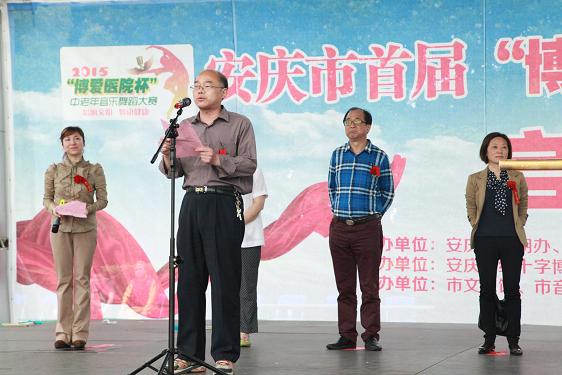 2015年5月18日,由市文明办、市文联、安庆日报社、市老龄办、市老年音乐舞蹈协会联合主办,安庆市博爱医院独家承办,市文化馆、市音乐家协会、市舞蹈家协会、市夕阳红艺术团、市各老年大学共同协办的安庆市首届“博爱医院杯”中老年音乐舞蹈大赛启动仪式在科技广场隆重举行。安徽黄梅艺术职业学院党委书记苏荣生,市委老干部局局长汪晓卫,安庆石化社区管理部书记宛敏胜,市委老干部局副局长冯箭,市老龄办副主任许先梅,市文联副主席何林生以及市文化馆、市音乐家协会、市舞蹈家协会、市老年音乐舞蹈协会、夕阳红艺术团负责同志和市博爱医院副院长潮家宽出席了此次活动。