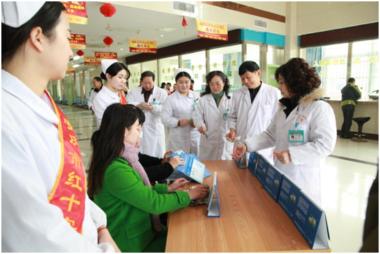 ▲博爱医院在职党员进社区开展健康体检活动