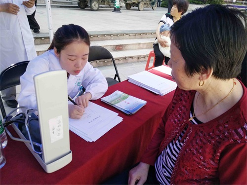 义诊现场,滨江社区卫生服务中心的义诊队伍刚一坐下,桌前就坐满了前来咨询体验的居民。义诊医务人员详细询问居民们的身体情况,为他们进行了量血压、心肺听诊等常规检查,并提出生活中的注意事项和日常保健等方面建议。医生们现场为碧桂园小区的居民建立了居民健康档案,对居民提出的病症仔细地查看,并给出了诊治方案。