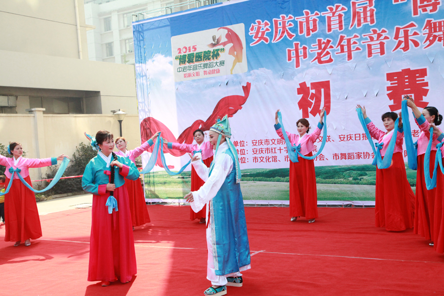 10月2日,由市文明办、市老龄办、市文联、安庆日报社、市老年音乐舞蹈协会联合举办,安庆市博爱医院独家承办,市文化馆、市音乐家协会、市舞蹈家协会、市夕阳红艺术团、市各老年大学协办的安庆市首届“博爱医院杯”中老年音乐舞蹈大赛初赛第一场在安庆市博爱医院大楼前隆重举行。