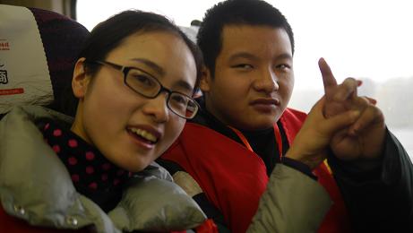 车上学员们一个个都十分的兴奋、开心,一上车便东张西望,看看着、摸摸那,有的还热情的跟前后座打招呼,有的只是紧紧的抓住身边志愿者的手,张开嘴巴对他们“微笑”,有的只顾卖萌,有的和身边的爱心人士却有着说不完的悄悄话。高铁从之前只有从电视上感受到的交通工具,今天他们切身体会到了。流线型的火车,白色的车身,风驰电掣又稳若泰山的前行。对于他们很多学员而言,去南京这也是第一次,一趟列车将两个城市联系在了一起,一趟列车把南京和我们的学员联系在了一起。